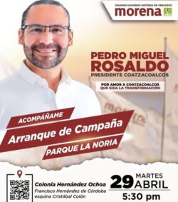 En Sayula de Alemán, que merece mención aparte, Modesta Clemente Vicente no quita el dedo del renglón después de haber puesto en evidencia la actitud hostil del dirigente estatal de su partido, Esteban Ramírez Zepeta, al designar de manera arbitraria como candidata a la tía de la alcaldesa, Lorena Sánchez Vargas. Aun así en los casos de Coatzacoalcos y Tatahuicapan, todo parece indicar que el arranque de las campañas se hará sin ningún problema. En el puerto, Pedro Miguel Rosaldo García hará lo propio en La Noria y muy temprano dará rueda de prensa; y en la joya de la corona, en la sierra, Rolando Bautista Ramírez tiene todo listo para hacer que Tatahuicapan retome el camino de lo que ha representado históricamente para la izquierda y que ha servido de ejemplo y modelo de desarrollo social no sólo en el estado, sino en el país entero.