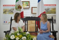 En el marco del 162 aniversario de la Batalla de Camarón, la gobernadora Rocío Nahle García se reunió con la embajadora de Francia en México, Delphine Borione, para fortalecer los lazos de cooperación y amistad entre Veracruz y la República Francesa, así como rendir homenaje a este hecho histórico que simboliza el valor y el respeto mutuo entre ambas naciones.