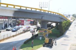 Personal del Ayuntamiento también trabaja en el Distribuidor Vial de la Carretera Transístmica, uno de los principales accesos a la ciudad, donde se ejecutan acciones de mejoramiento urbano y seguridad vial. Las acciones contemplan pintura general para reforzar la imagen visual, así como la reparación de rejillas para garantizar un tránsito más seguro y evitar daños a vehículos.