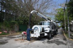Los equipos Vactor se integraron a las labores que se desarrollan en diversas colonias, Fovissste III, Gaviotas, Tesoro, el Centro, entre otras, donde se realizan trabajos de limpieza profunda de líneas de drenaje y pozos de visita para prevenir taponamientos, encharcamientos e inundaciones.