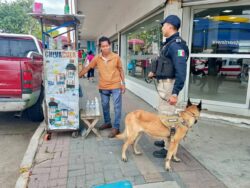 Policía Municipal de Coatzacoalcos fortalece la proximidad social con la Unidad Canina en el centro de la ciudad