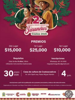 Con el único propósito de seguir promoviendo las artes y la cultura popular, este viernes en Casa Chantli, se presentó en Coatzacoalcos el Segundo Concurso Infantil y Juvenil de Jaraneros 2026.