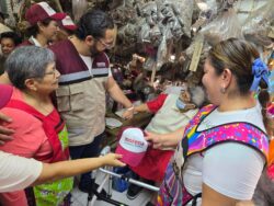 Precisó que se trata de sentar las bases, «un control riguroso para que ustedes mismos tengan más capacidad de crecimiento, de alguna manera se empiece a ver como un nuevo modelo de negocio para el crecimiento ordenado y legal». Posteriormente, recorrió el mercado Morelos acompañado por el anfitrión Erick Álvarez Pavón, líder de los locatarios, para saludar de mano y escuchar sus inquietudes. De la misma manera, acudió al mercado Coatzacoalcos para saludar a los comerciantes de esa central de abasto.