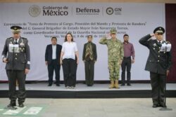 La gobernadora Rocío Nahle García reiteró la colaboración con las fuerzas federales durante la Toma de Protesta, Posesión del Mando y Jura de Bandera del coordinador estatal de la Guardia Nacional, Iván Navarrete Torres, acto encabezado por el coordinador territorial de la Guardia Nacional en la Región Golfo, Ignacio Murillo Rodríguez. En las instalaciones de la Coordinación Estatal de Veracruz Cabeza Olmeca, tras los honores correspondientes a los símbolos patrios, se dio lectura al amplio currículum vitae; destaca una trayectoria profesional forjada a través de la rigurosa escala jerárquica dentro de la Secretaría de la Defensa Nacional.